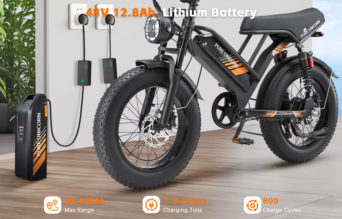 U5’s powerful 48V 19.2Ah electric moped battery enables thrilling performance and a long-lasting ride up to 80km. Built for fat tire e-bike enthusiasts and electric moped users, it’s fully removable and secure—ready to conquer hills, cities, or coastlines.
