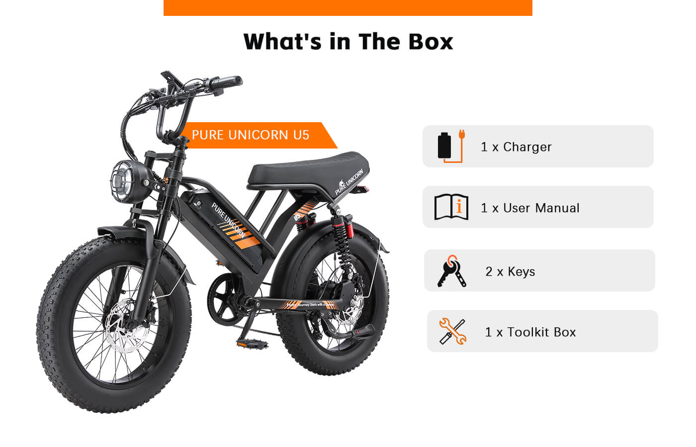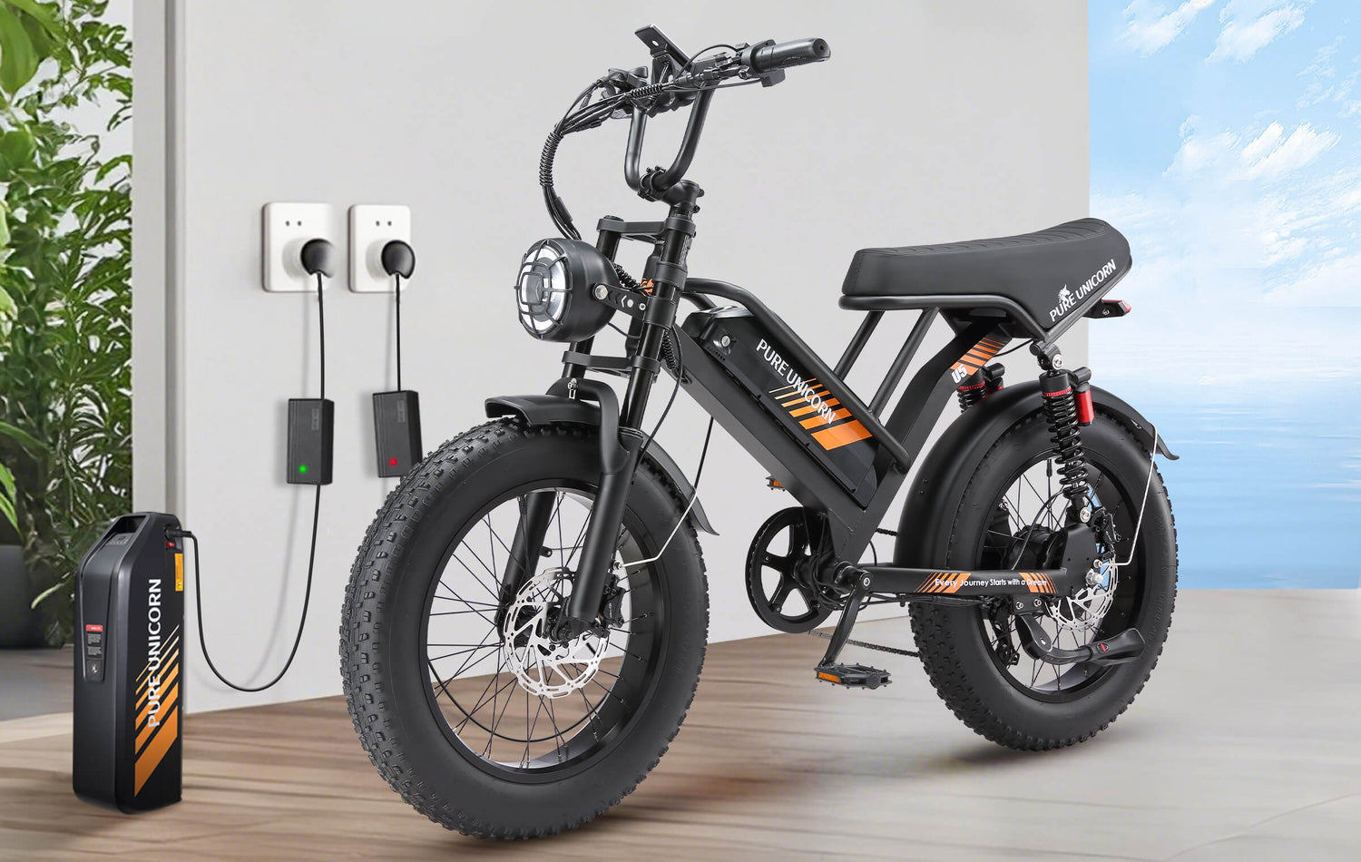 PURE UNICORN U5 48V 19.2Ah 1000W Fat Tire Moped Electric Bike